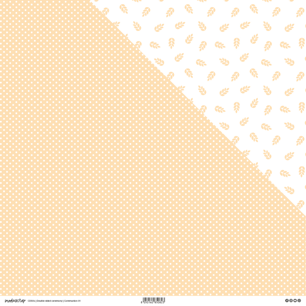 Foglio doubleface Modascrap: da un lato della carta trovi la tonalità a fondo pieno, mentre dal lato opposto i pois. La carta utilizzata è Fedrigoni Woodstock Bianca, la stessa utilizzata per i paper pack Modascrap ma con un grammatura superiore, ben 225 gr.