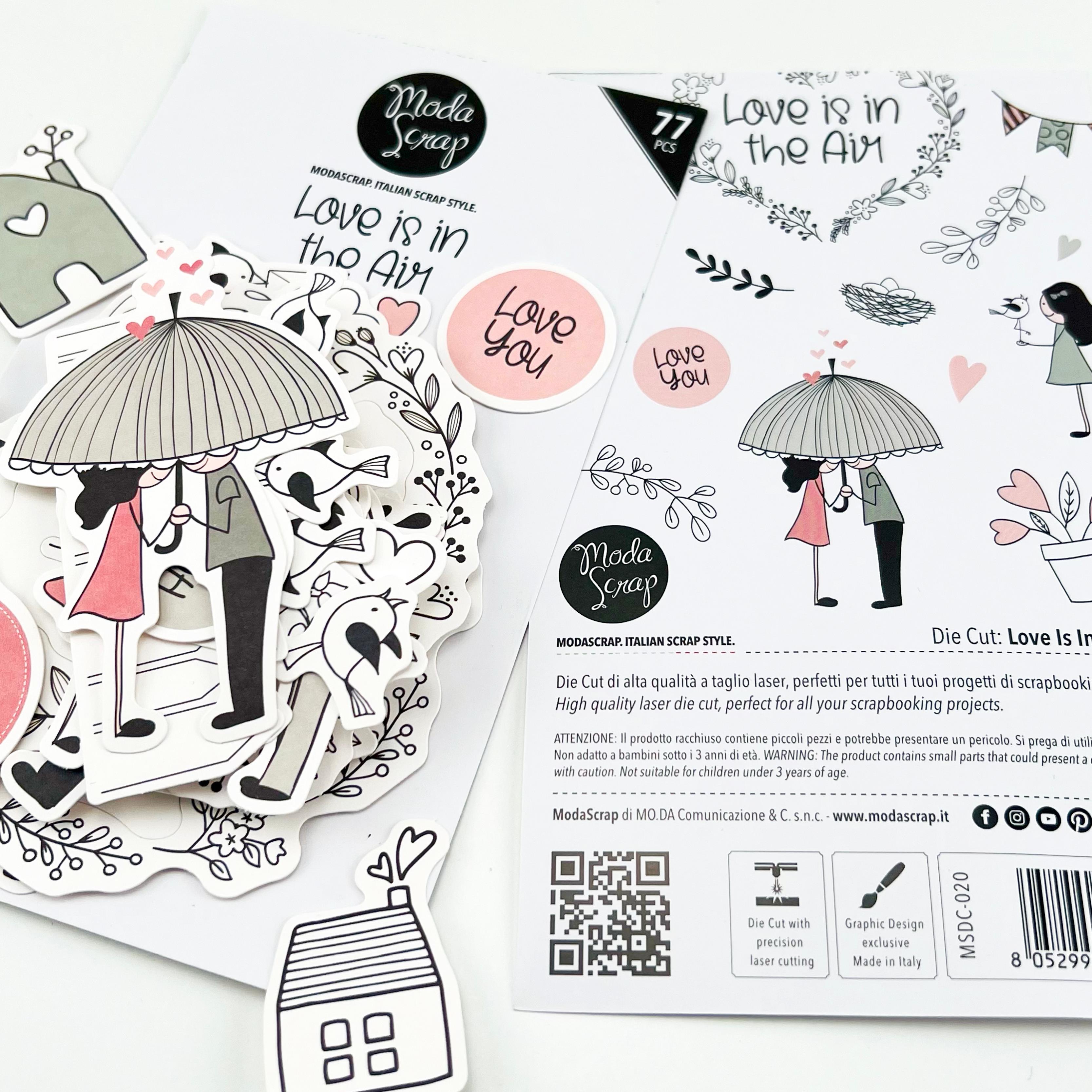 La confezione include 77 die cuts coordinati alla collezione Love Is In The Air paper pack ModaScrap.