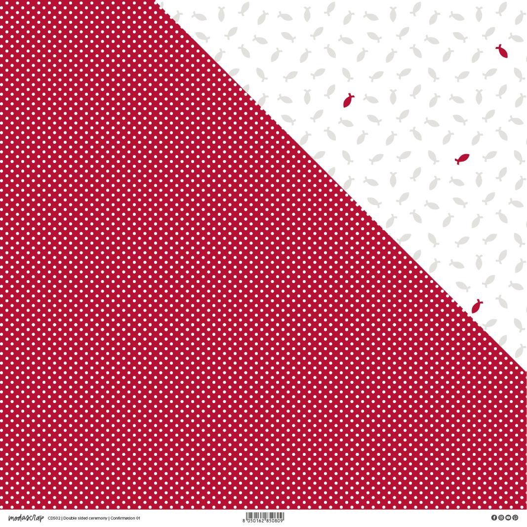 Foglio doubleface Modascrap: da un lato della carta trovi la tonalità a fondo pieno, mentre dal lato opposto i pois. La carta utilizzata è Fedrigoni Woodstock Bianca, la stessa utilizzata per i paper pack Modascrap ma con un grammatura superiore, ben 225 gr.