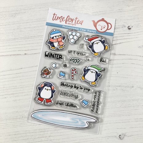 Set di timbri in fotopolimero trasparente A6 contenente 22 timbri singoli.possibilita di abbinarla alla fustella Skating By Penguins Metal Dies