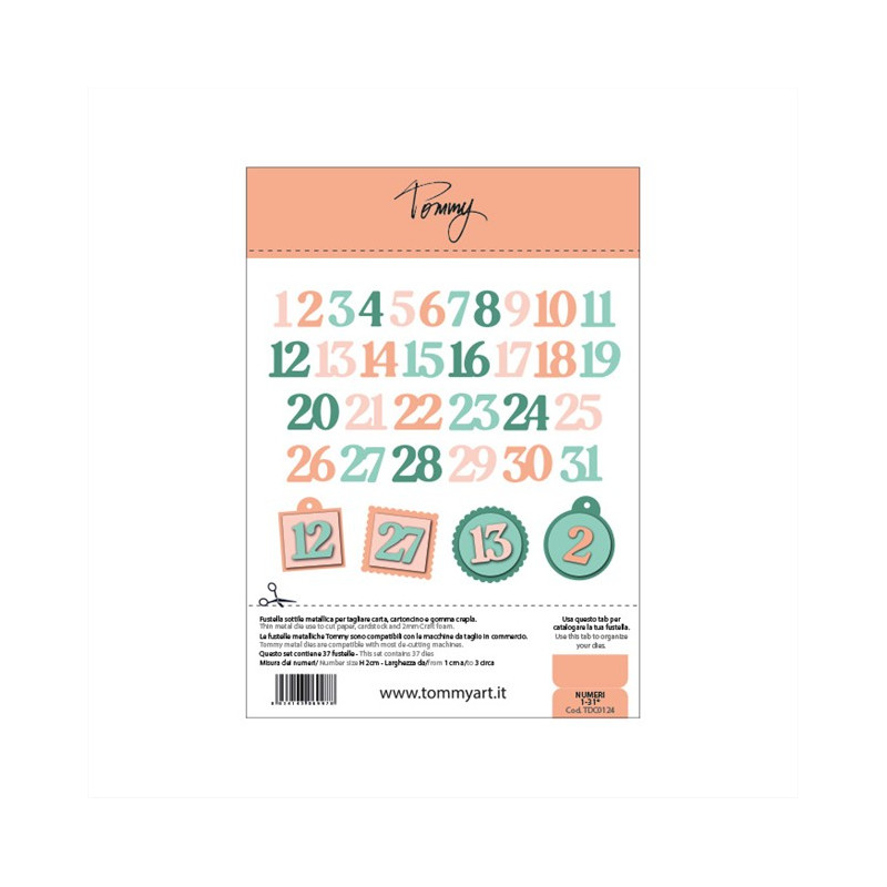 Le fustelle sono accompagnate da un foglio metallico (15 cm x 21cm) e da una busta in plastica con bottone richiudibile. Il formato del foglio metallico è perfetto da inserire nei raccoglitori della linea Tommy. Il piccolo tab nel cartoncino di presentazione potrà essere utilizzato per catalogare la fustella.